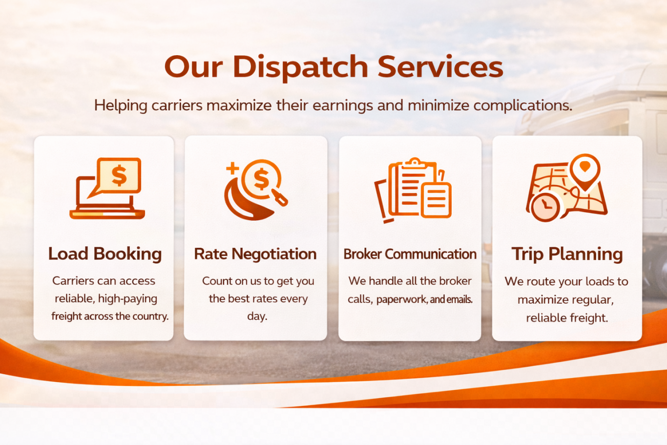Route Link Dispatch specializes in round-the-clock trucking dispatch and freight brokerage services. We prioritize quick load matching and dependable support to keep your freight moving and your business thriving with minimal downtime.